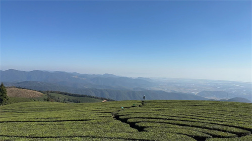 上午,一行人乘车抵达福泉山景区。福泉山景区位于东钱湖的东南山地,濒象山港于东南,临东钱湖于西北,规划面积16000亩。景区内植被茂盛,松木、杉木林让沿途的风景更有层次,山顶植被以茶树为主,3600余亩茶树环坡而栽,树形圆润成垅,依山起伏,形成“茶岭碧波”景观,蔚为壮观。在登上福泉山最高峰后,大家也成功观测到漫漫山岭茶园林木在脚下延伸,山海城景远景朦胧,别有一番“会当凌绝顶,一览众山小”的韵味。山上的空气清新宜人,微风拂过,带来了青草的香气,让人心旷神怡。