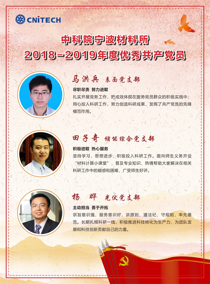 2018-2019年度优秀共产党员:马洪兵、田子奇、杨晔