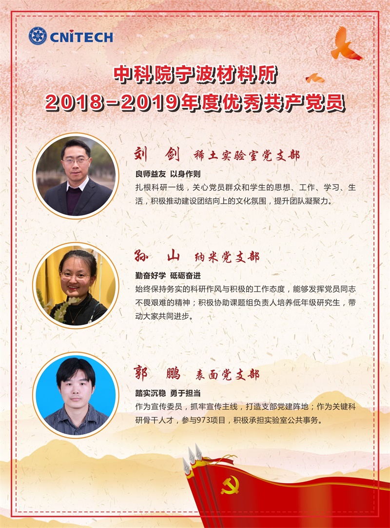 2018-2019年度优秀共产党员:刘剑、孙山、郭鹏