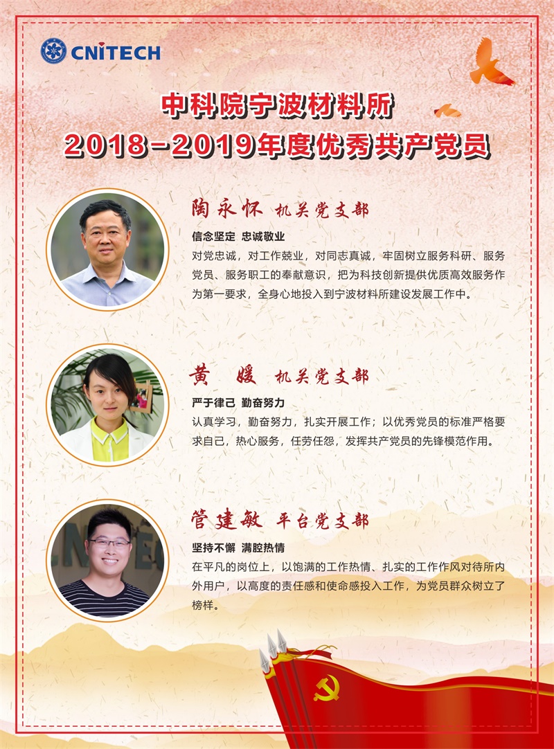 2018-2019年度优秀共产党员:陶永怀、黄媛、管建敏