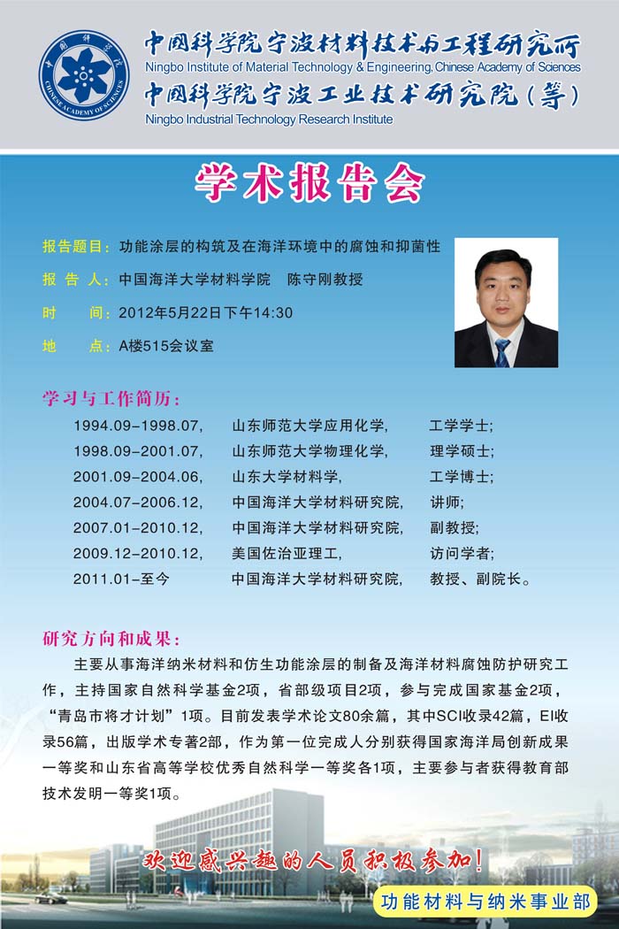 陈守刚:功能涂层的构筑及在海洋环境中的腐蚀和抑菌性