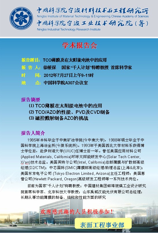 徐根保:TCO薄膜及在太阳能电池中的应用