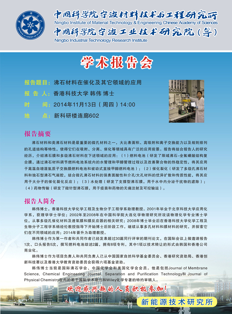 韩伟:沸石材料在催化及其它领域的应用