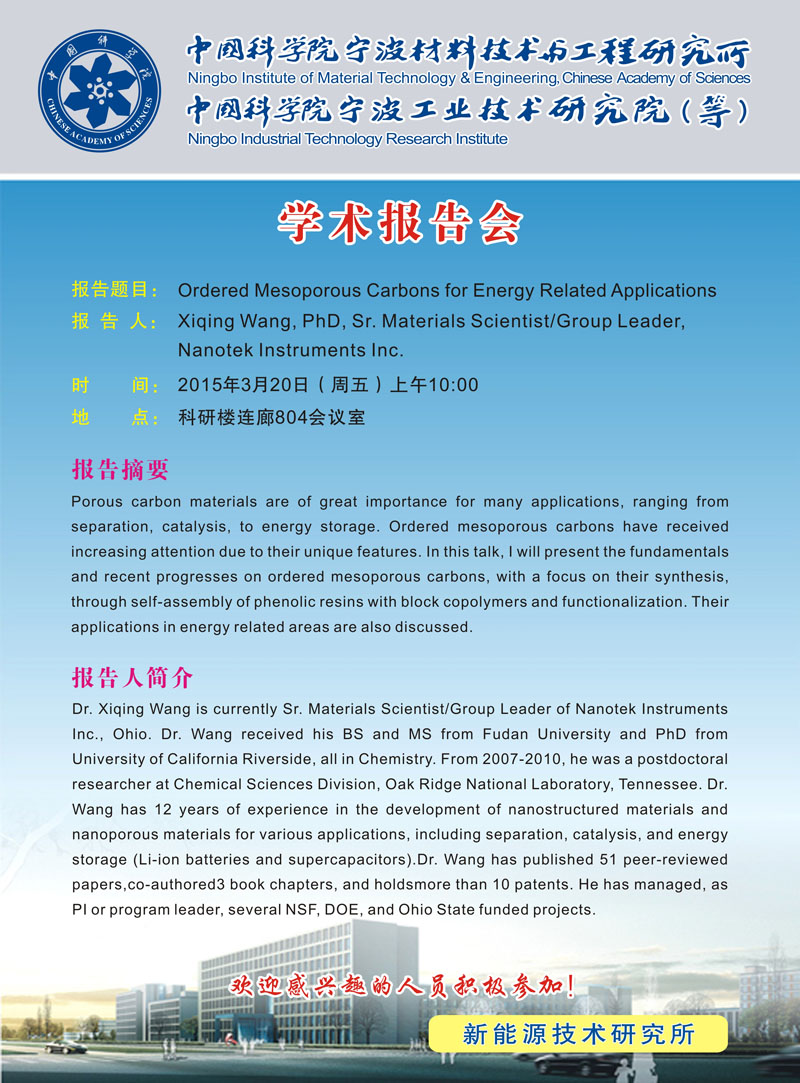 Xiqing Wang:Ordered Mesoporous Carbons for Energy Related Applications