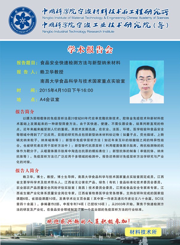 赖卫华:食品安全快速检测方法与新型纳米材料