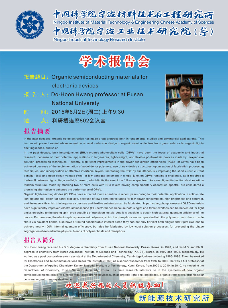 Do-Hoon Hwang:Organic semiconducting materials for electronic devices