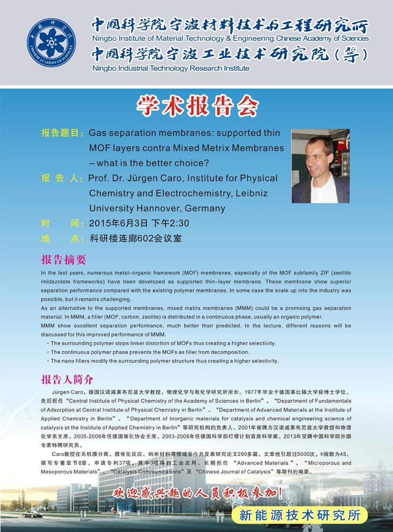 Jürgen Caro:Gas separation membranes:supported thin MOF layers contra Mixed Metrix Membranes—what is the better choice? 发布:2015-06-01 点赞: 字号:小 大 打印:
