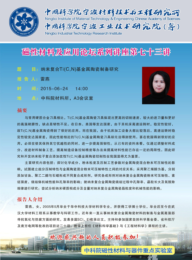 雷燕:纳米复合Ti(C,N)基金属陶瓷制备研究