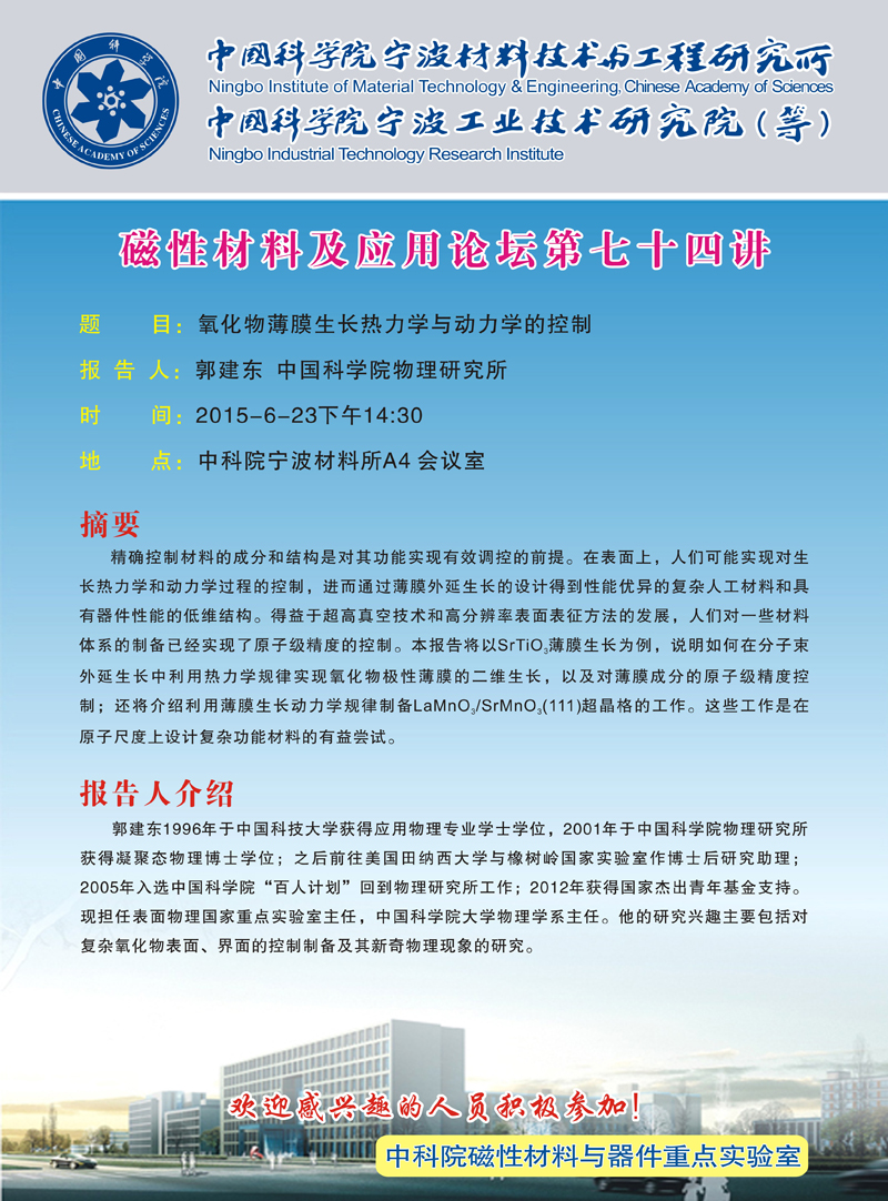 郭建东:氧化物薄膜生长热力学与动力学的控制