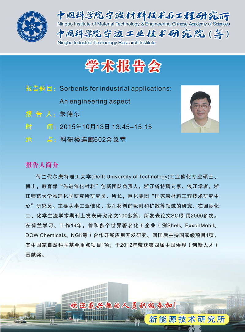 10月13日学术报告会:朱伟东:Sorbents for industrial applications:An engineering aspect 发布:2015-10-08 点赞: 字号:小 大 打印: