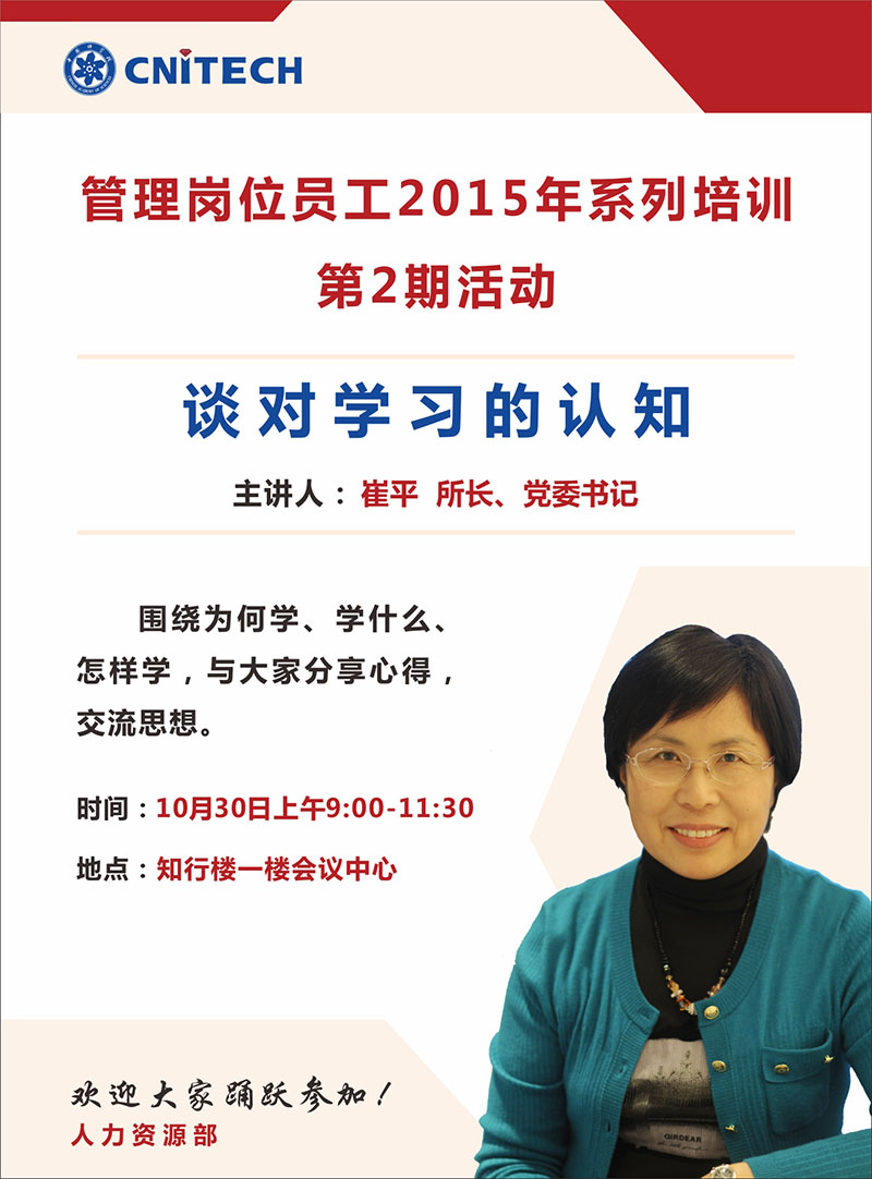 10月30日报告:崔平:管理岗位员工2015年系列培训第2期活动——谈对学习的认知