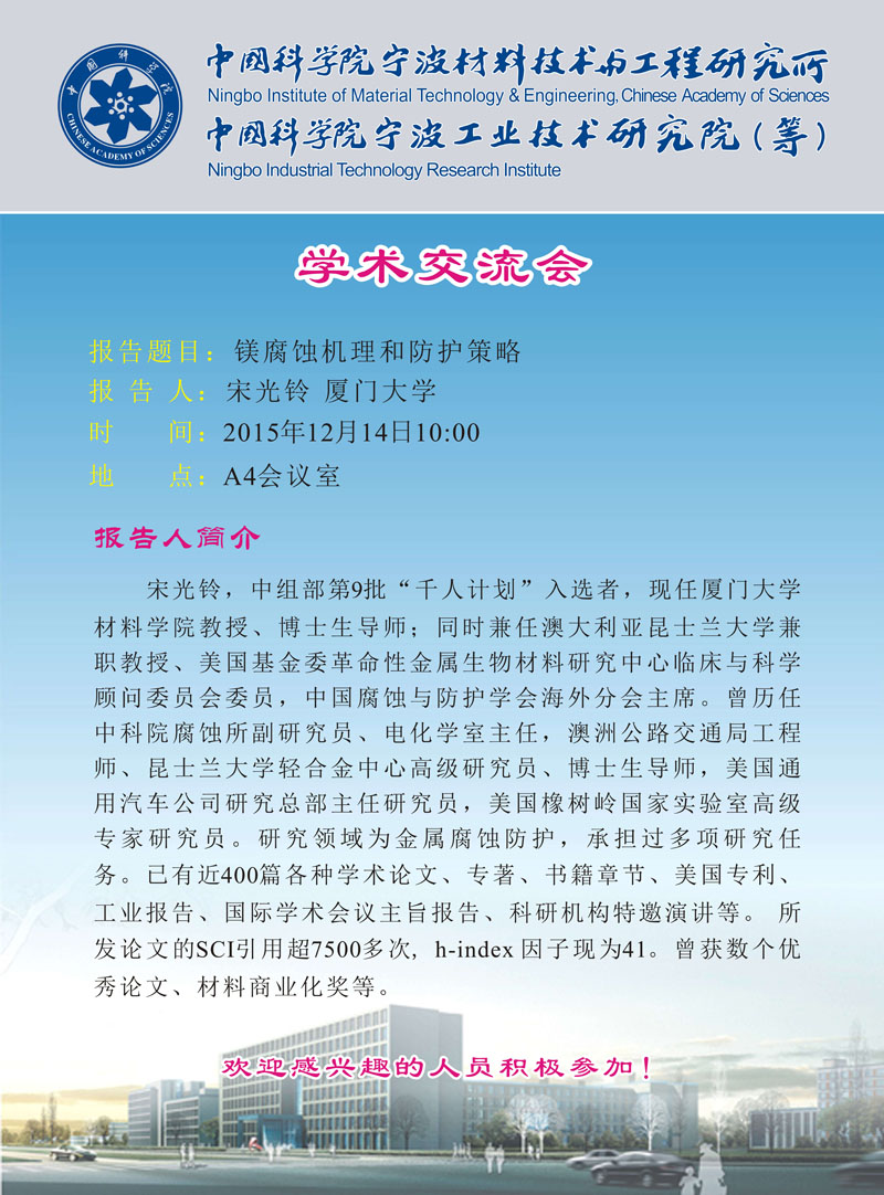 12月14日:宋光铃:镁腐蚀机理和防护策略