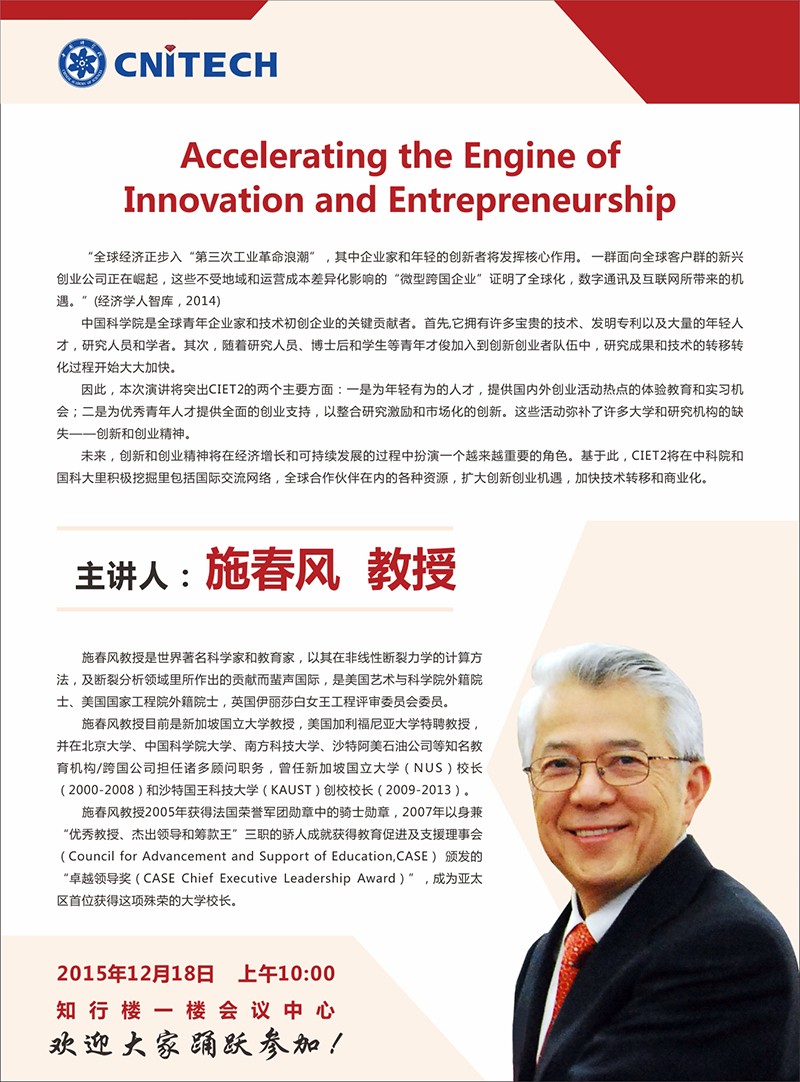 12月18日:施春风:Accelerating the Engine of Innovation and Entrepreneurship