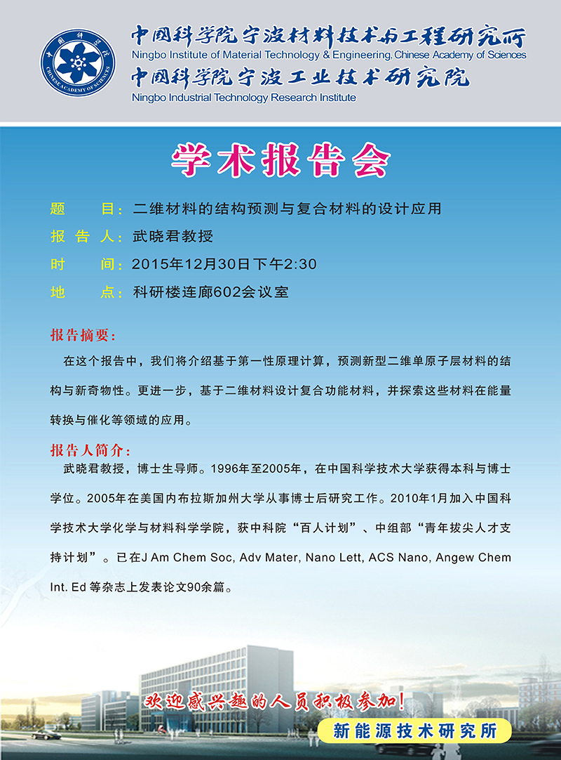 12月30日:武晓君:二维材料的结构预测与复合材料的设计应用
