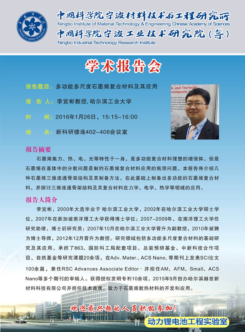 1月26日:李宜彬:多功能多尺度石墨烯复合材料及其应用