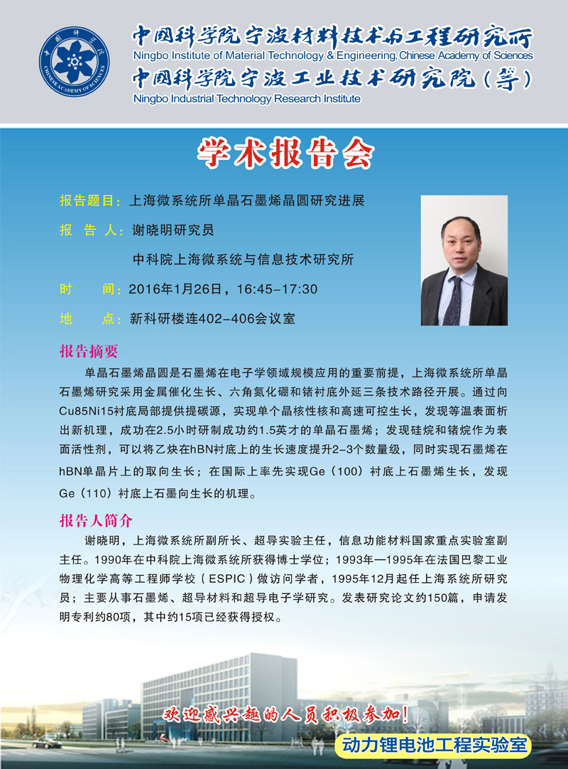 1月26日:谢晓明:上海微系统所单晶石墨烯晶圆研究进展