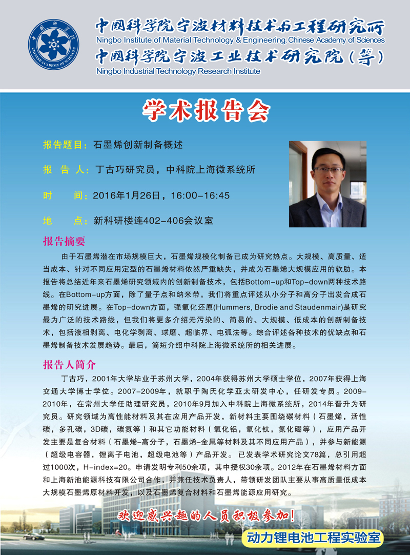 1月26日:丁古巧:石墨烯创新制备概述