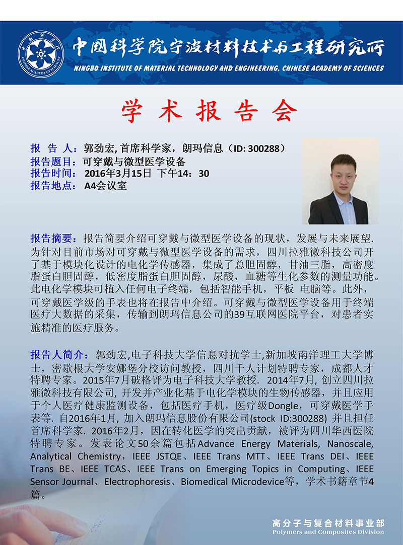 3月15日:郭劲宏:可穿戴与微型医学设备