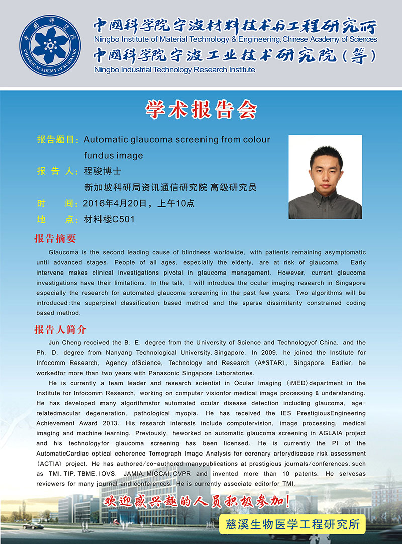 4月20日:程骏:Automatic glaucoma screening from colour fundus image