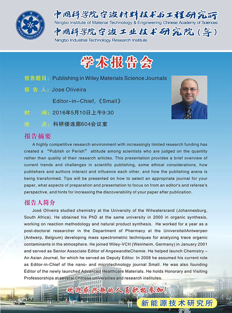5月10日:Jose Oliveira:Publishing in Wiley Materials Science Journals