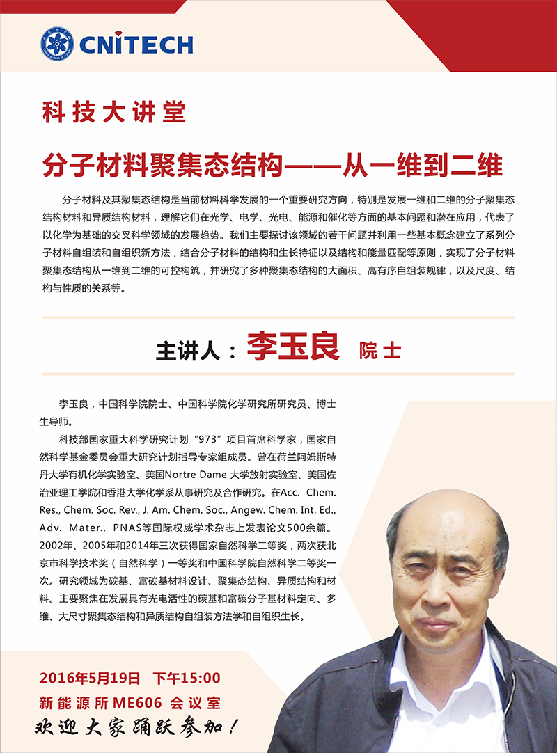 5月19日:李玉良:分子材料聚集态结构——从一维到二维