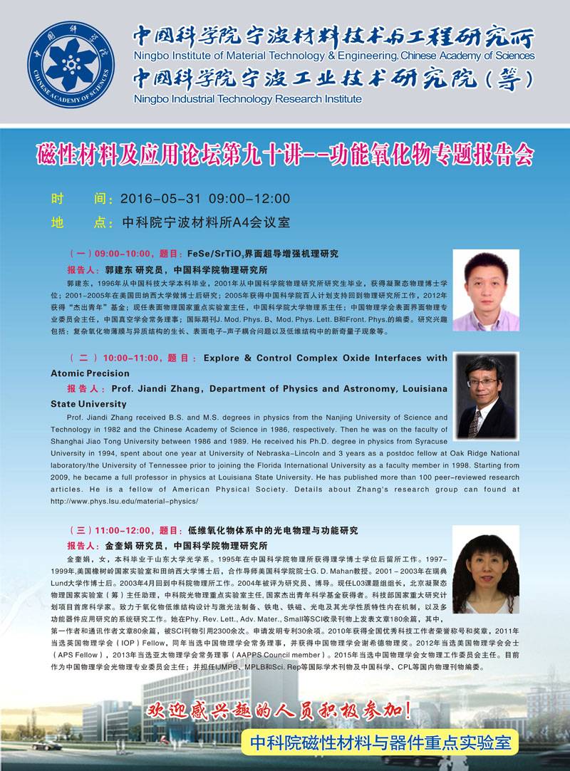 5月31日:磁性材料及应用论坛之功能氧化物专题报告会