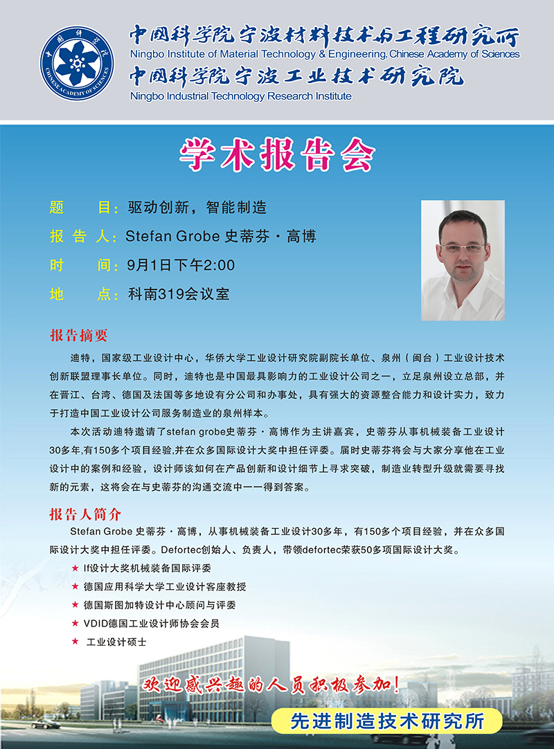 9月1日:Stefan Grobe:驱动创新,智能制造