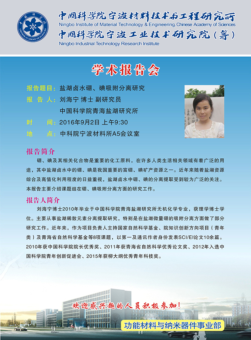 9月2日:刘海宁:盐湖卤水硼、碘吸附分离研究