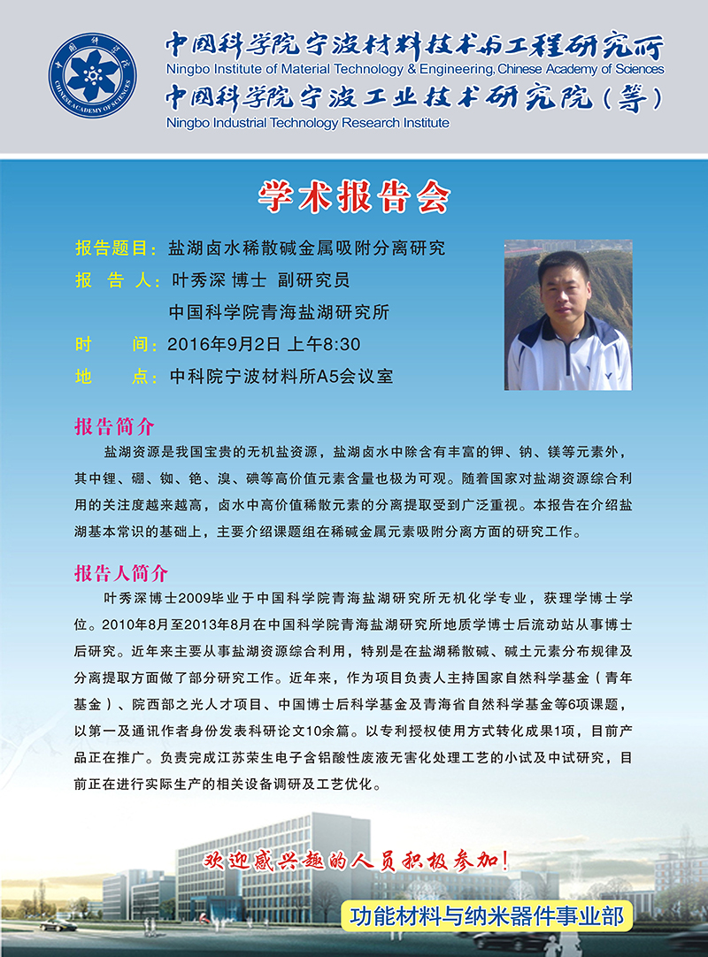 9月2日:叶秀深:盐湖卤水稀散碱金属吸附分离研究
