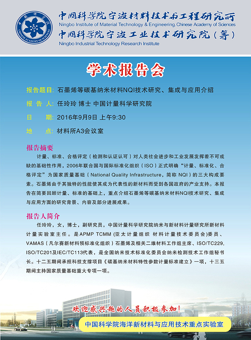 9月9日:任玲玲:石墨烯等碳基纳米材料NQI技术研究、集成与应用介绍