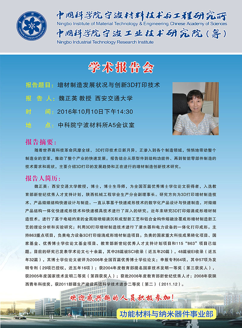 10月10日:魏正英:增材制造发展状况与创新3D打印技术