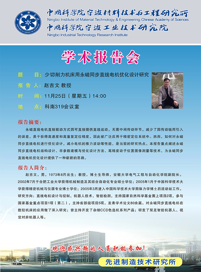 11月25日:赵吉文:少切削力机床用永磁同步直线电机优化设计研究