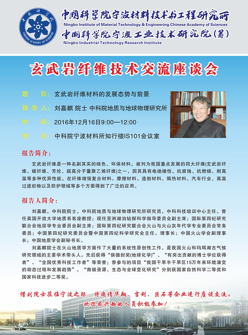 12月16日:刘嘉麒:玄武岩纤维材料的发展态势与前景