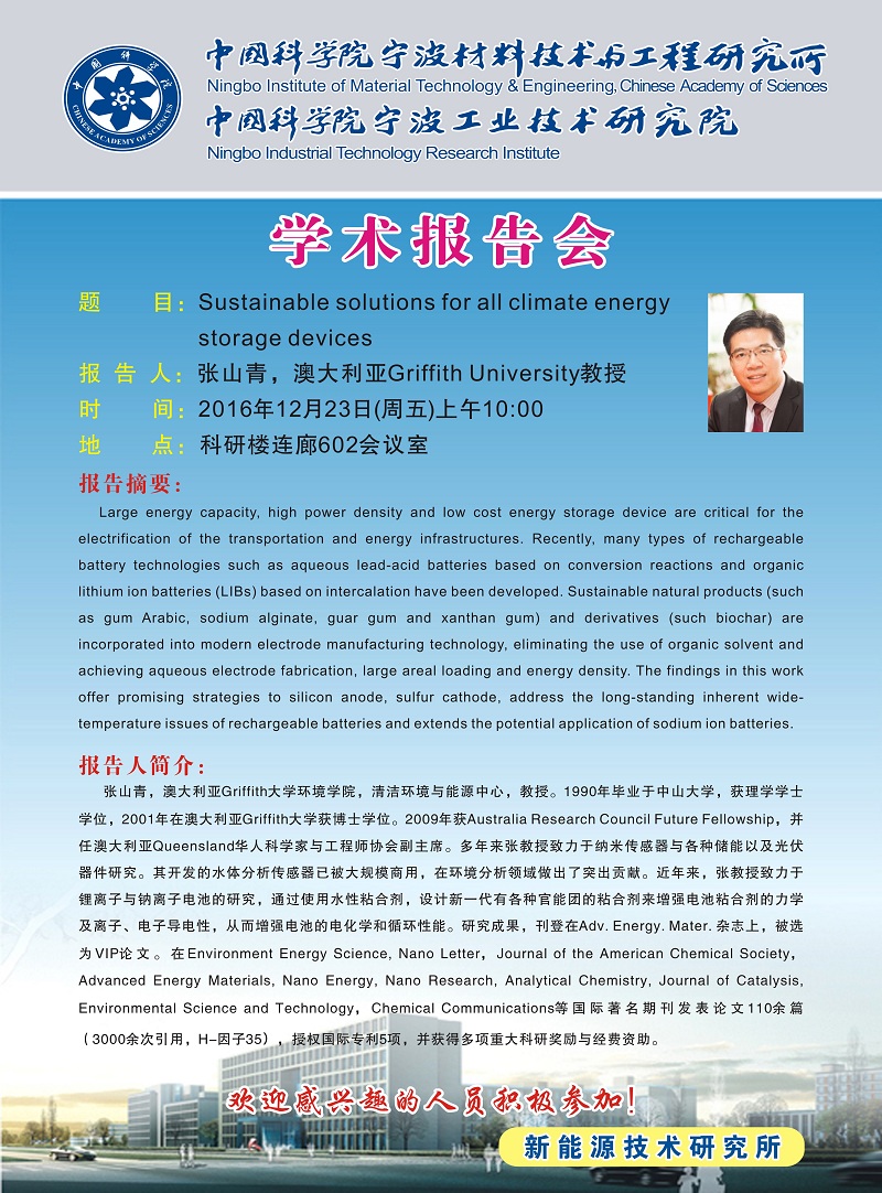 12月23日:张山青:Sustainable solutions for all climate energy storage devices