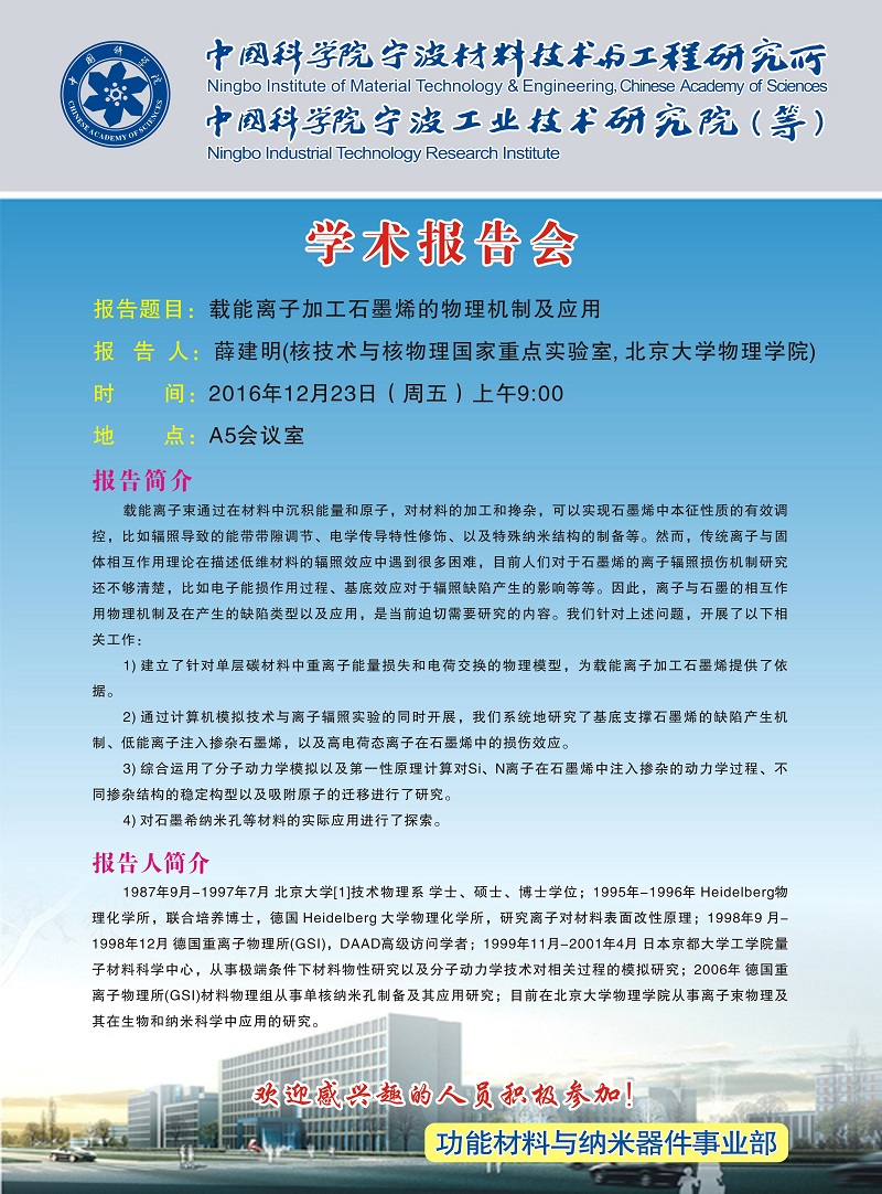 12月23日:薛建明:载能离子加工石墨烯的物理机制及应用