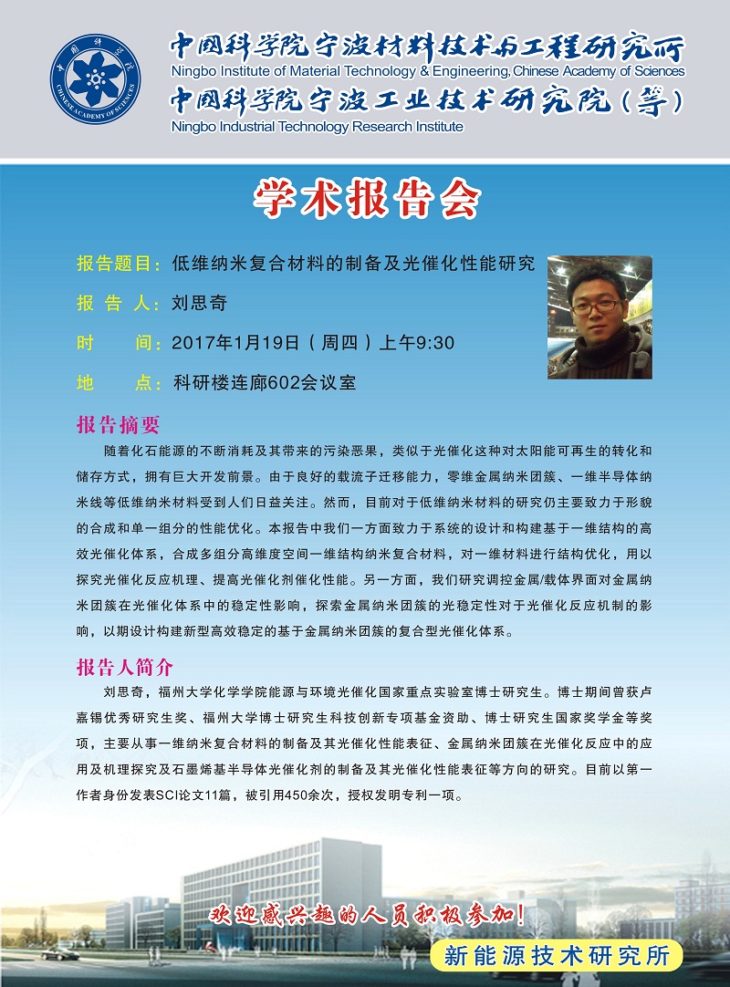 1月19日:刘思奇:低维纳米复合材料的制备及光催化性能研究