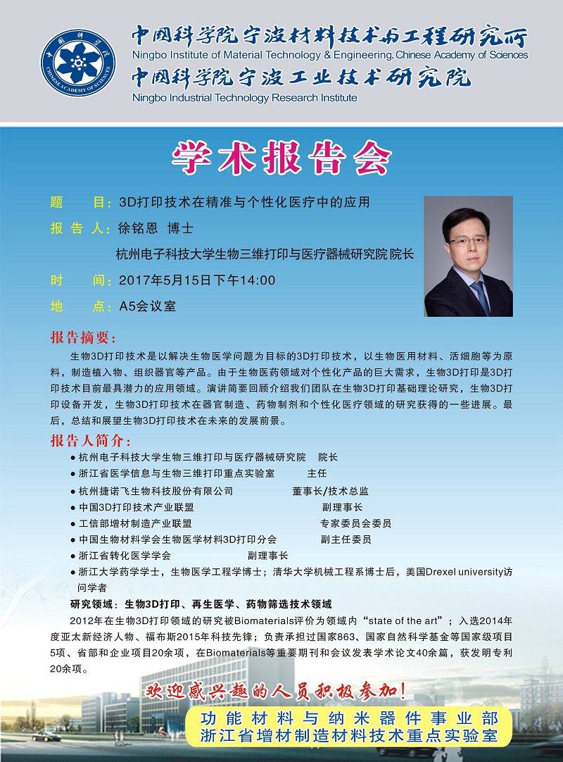 5月15日:徐铭恩:3D打印技术在精准与个性化医疗中的应用