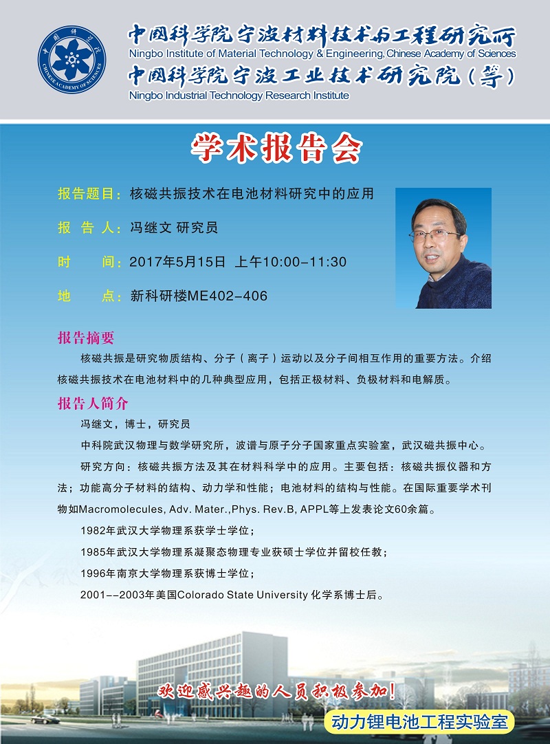 5月15日:冯继文:核磁共振技术在电池材料研究中的应用