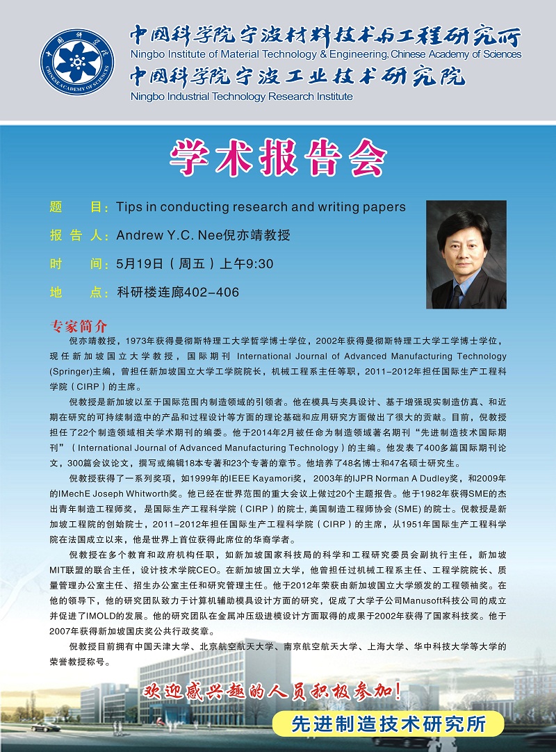 5月19日:Andrew Y.C.Nee倪亦靖:Tips in conducting research and writing papers
