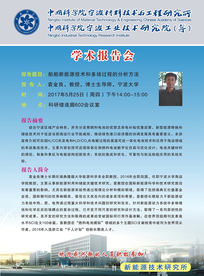 5月25日:袁金良:船舶新能源技术和多场过程的分析方法