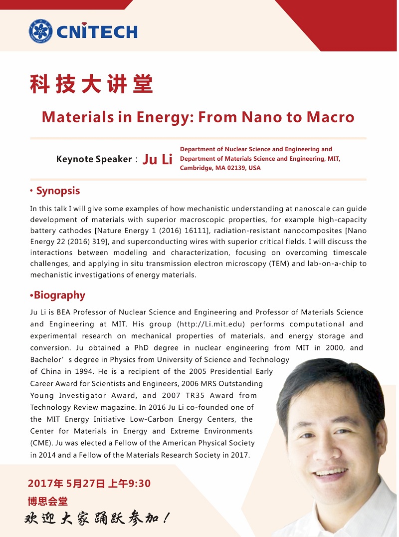 5月27日:科技大讲堂:Ju Li:Materials in Energy: From Nano to Macro