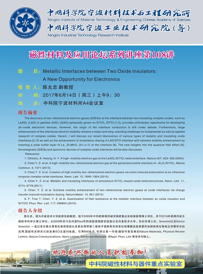 6月14日:陈允忠:Metallic Interfaces between Two Oxide Insulators