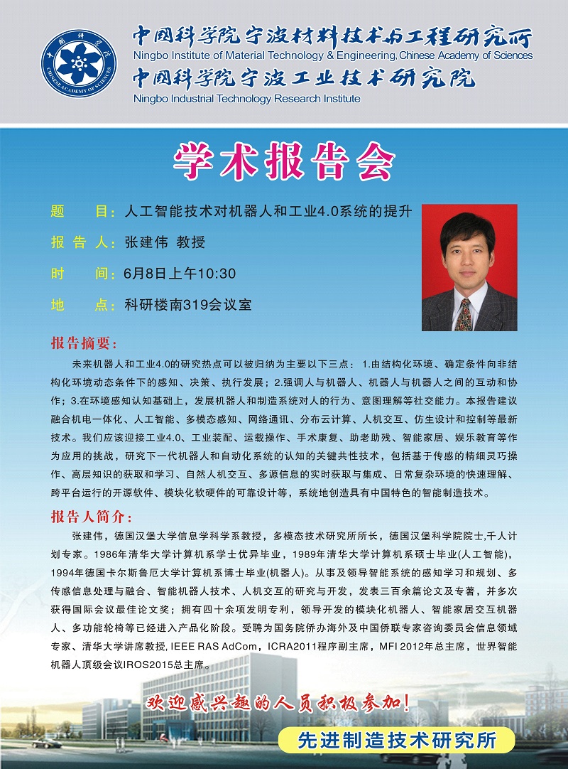 6月8日:张建伟:人工智能技术对机器人和工业4.0系统的提升