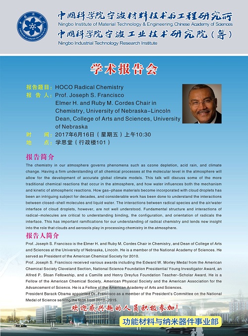 6月16日:Joseph S. Francisco:HOCO Radical Chemistry