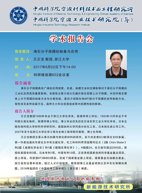 6月22日:王正宝:沸石分子筛膜的制备与应用