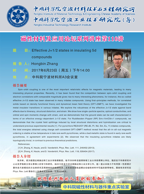 6月23日:磁性材料及应用论坛系列讲座第110讲——报告人张洪彬