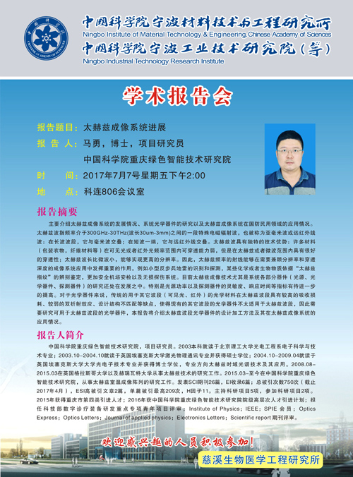 7月7日:太赫兹成像系统进展——马勇