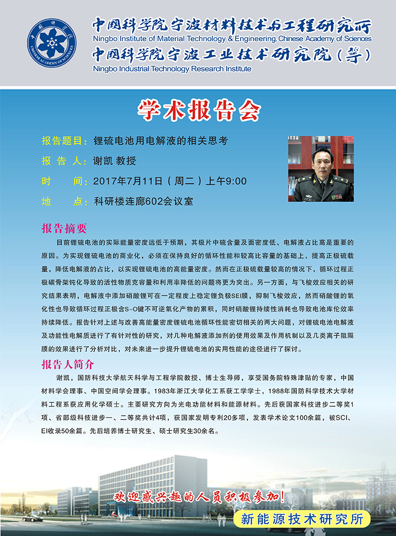 7月11日:谢凯:锂硫电池用电解液的相关思考