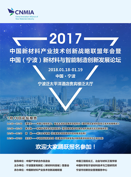 1月18-19日:中国新材料产业技术创新战略联盟年会暨中国(宁波)新材料与智能制造创新发展论坛