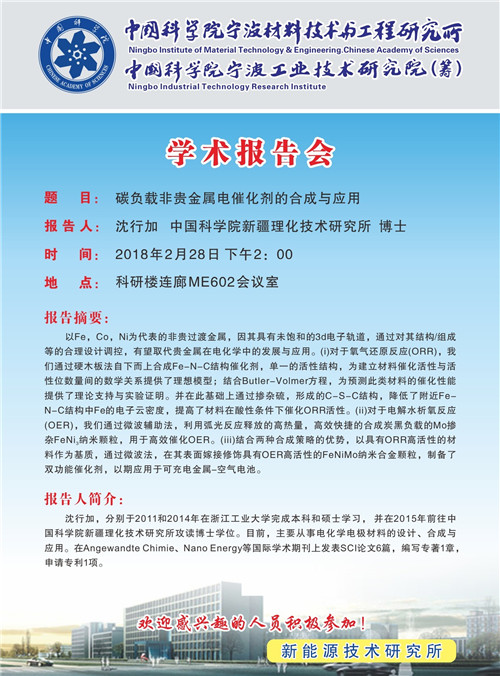 2月28日:沈行加:碳负载非贵金属电催化剂的合成与应用